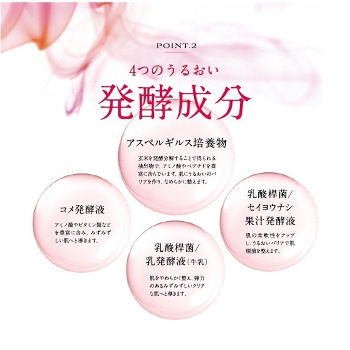 PG、グリセリン、BG、ヤシ油脂肪酸PEG-7グリセリル、トリインステアリン酸PEG-20グリセリル、ラウリン酸ポリグリセリルー10、LPG、二酸化炭索、アスペルギ ルス培養物、コメ発酵液、クズ根エキス、アロエベラ葉エキス、クロレラエキス、ローズマリー葉エキス、乳酸菌/セ イヨウナシ果汁発酵液、アーチチョーク葉エキス、乳酸桿 菌/乳発酵液(牛乳)、カルボマー、PPG-9ジグリセリル、TEA、香料